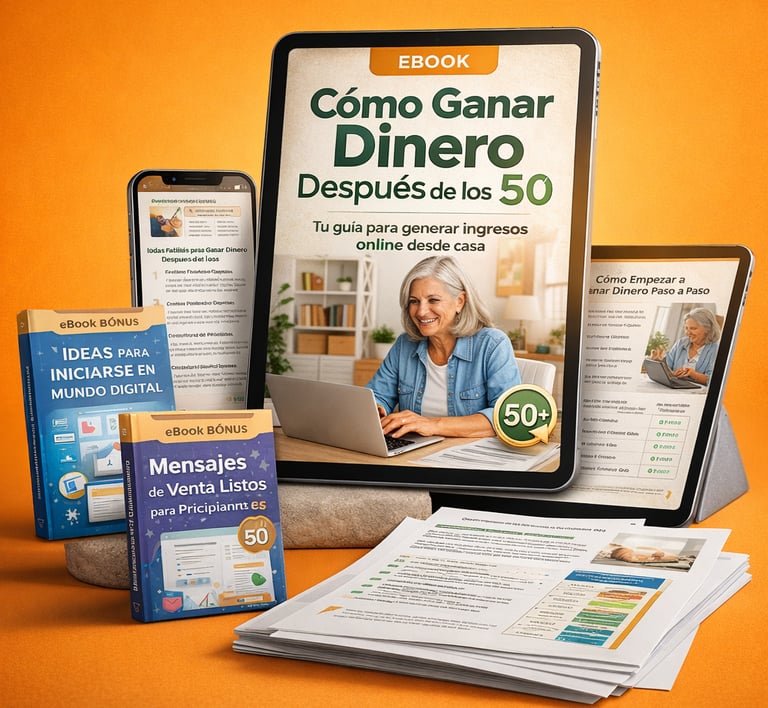 Este ebook fue creado especialmente para personas mayores de 50 que quieren aprender formas simples de generar ingresos online desde casa.